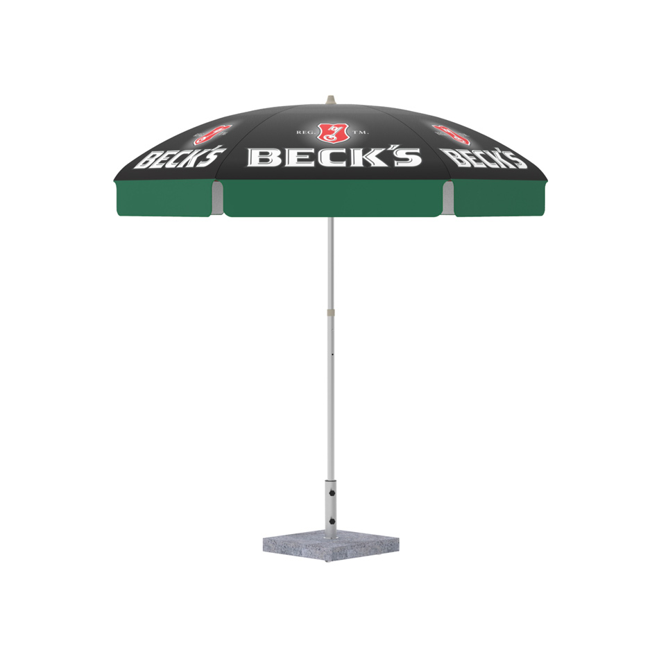 Nuestra línea de parasoles promocionales de metal ha sido desarrollada específicamente para cumplir con las duras condiciones climáticas en el Caribe, garantizando un retorno duradero de su inversión. Los parasoles se pueden imprimir de borde a borde, e incluso una impresión diferente en cada panel. Este modelo tiene gran versatilidad y excelente atractivo visual gracias a nuestra técnica impresión digital de alta calidad y vinyl duradero. Cada parasol de metal que fabricamos se hace por pedido y personalizado, dándole la libertad completa para adaptarse a sus necesidades específicas. Para su comodidad, tenemos 3 tamaños diferentes disponibles para adaptarse a cualquier presupuesto o necesidades de espacio. Las bases se venden por separado, por favor visite nuestra sección de bases.