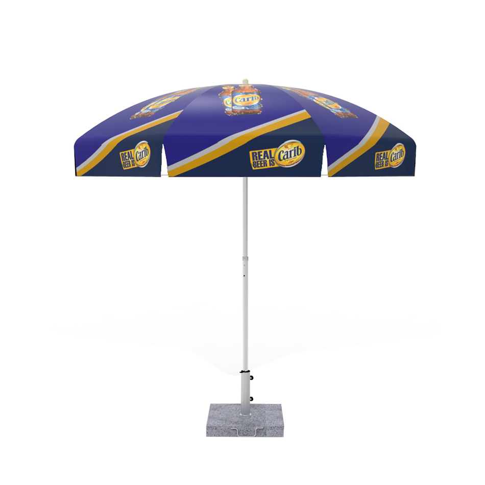 Nuestra línea de parasoles promocionales de metal ha sido desarrollada específicamente para cumplir con las duras condiciones climáticas en el Caribe, garantizando un retorno duradero de su inversión. Los parasoles se pueden imprimir de borde a borde, e incluso una impresión diferente en cada panel. Este modelo tiene gran versatilidad y excelente atractivo visual gracias a nuestra técnica impresión digital de alta calidad y vinyl duradero. Cada parasol de metal que fabricamos se hace por pedido y personalizado, dándole la libertad completa para adaptarse a sus necesidades específicas. Para su comodidad, tenemos 3 tamaños diferentes disponibles para adaptarse a cualquier presupuesto o necesidades de espacio. Las bases se venden por separado, por favor visite nuestra sección de bases.